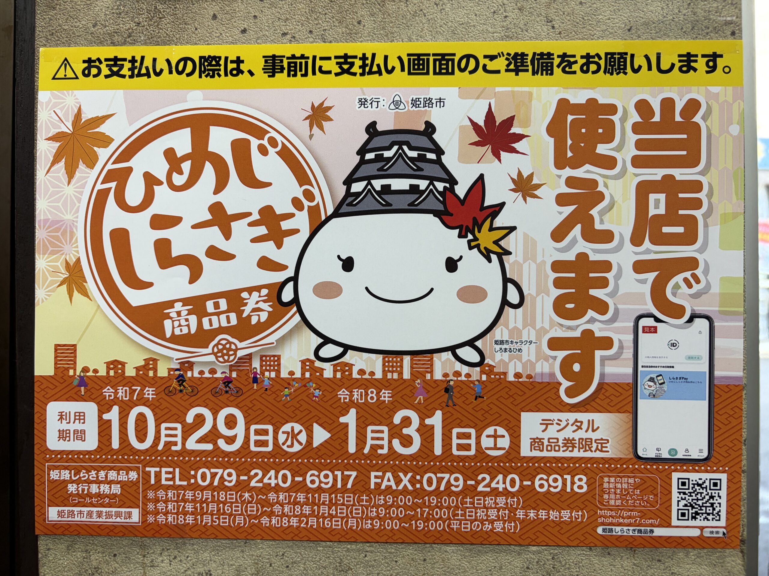 前回姫路市民に大好評でした姫路市独自の施策『しらさぎ商品券』が本日より利用可能になりました‼️