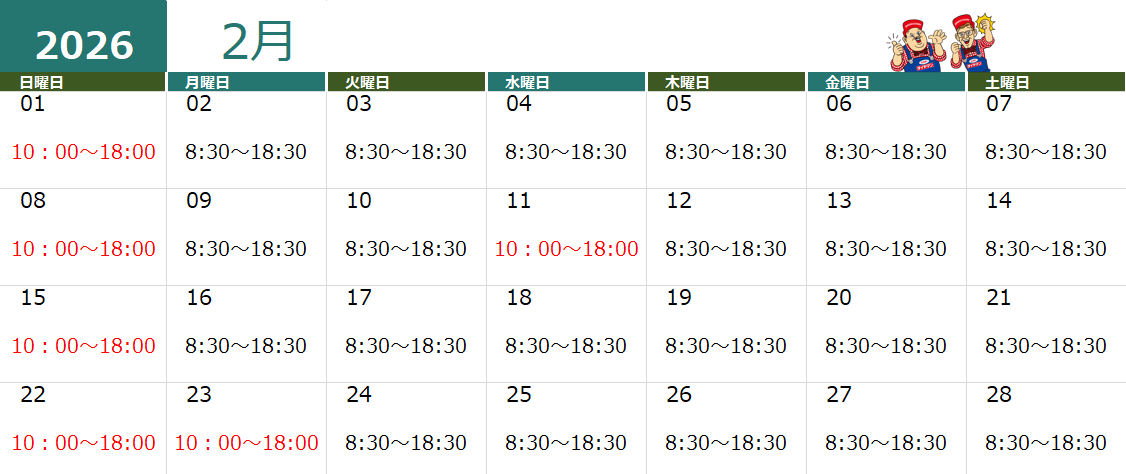 2月の営業時間のお知らせです!